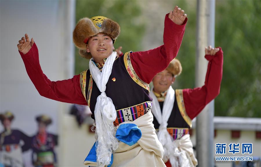 山南市扎囊县桑耶镇乃卡村文艺演出队为村民表演节目(7月7日摄)。新华社记者 张汝锋 摄