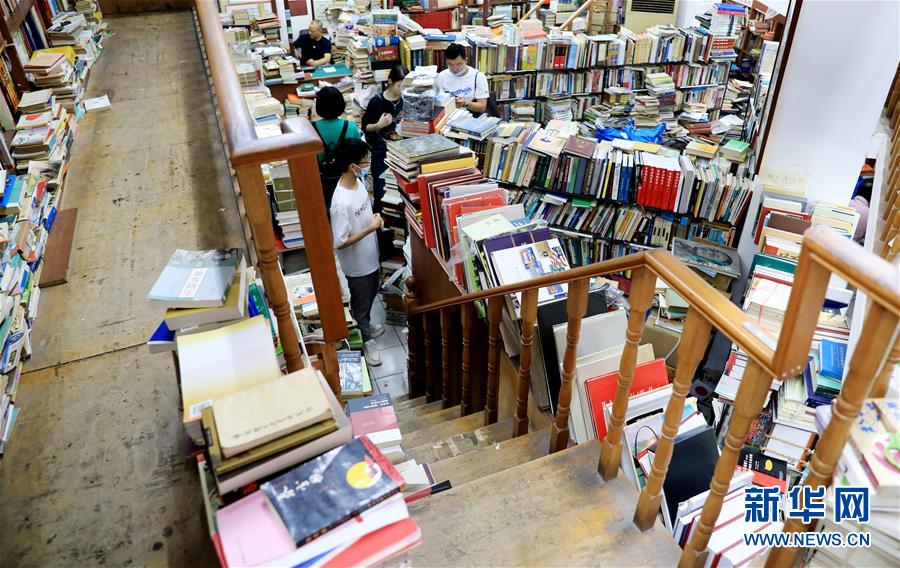 7月13日,读者在复旦旧书店内挑选书籍。新华社记者 方喆 摄