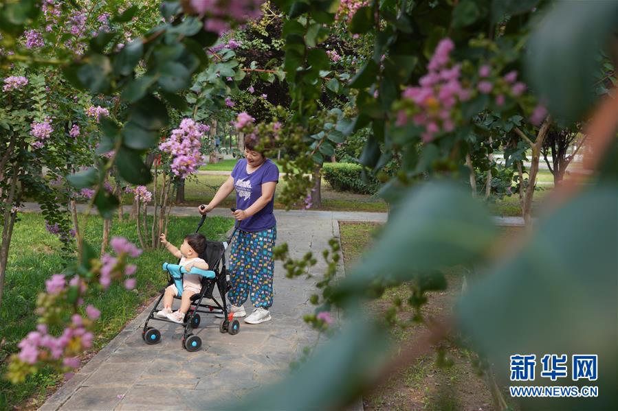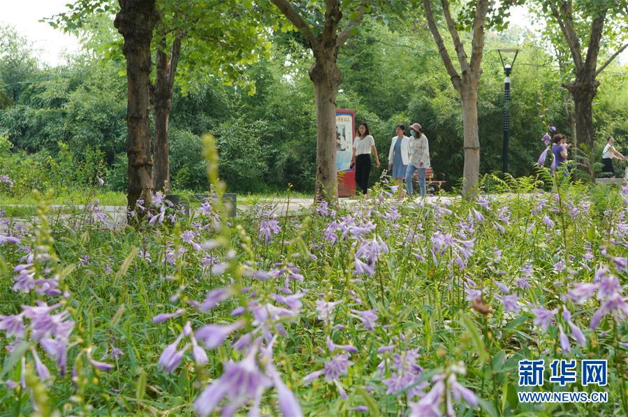 7月14日,市民在河北省内丘县扁鹊公园游玩。 近年来,河北省邢台市内丘县不断优化城市生态绿化布局,通过加强风景廊道、景区游园、单位庭院绿化建设,进一步拓展绿色公共空间,打造生态宜居城区,改善和提升城市面貌和人居生活环境。 新华社记者 朱旭东 摄