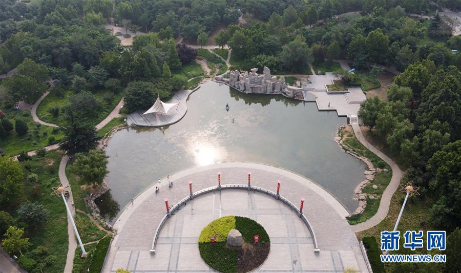 这是7月14日拍摄的河北省内丘县扁鹊公园一角(无人机照片)。 近年来,河北省邢台市内丘县不断优化城市生态绿化布局,通过加强风景廊道、景区游园、单位庭院绿化建设,进一步拓展绿色公共空间,打造生态宜居城区,改善和提升城市面貌和人居生活环境。 新华社记者 朱旭东 摄