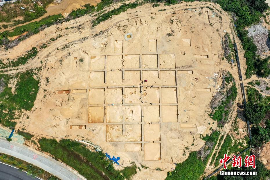 7月14日,航拍位于广东省广州市的中新知识城北起步区马头庄先秦遗址。广州市文物考古研究院13日通报,中新知识城北起步区马头庄先秦遗址抢救性考古发掘,目前共清理新石器时代晚期、两周时期墓葬65座,出土陶鼎、陶豆、陶器座、石铲、石环、玉玦等文物107件/套。中新社记者 陈骥旻 摄