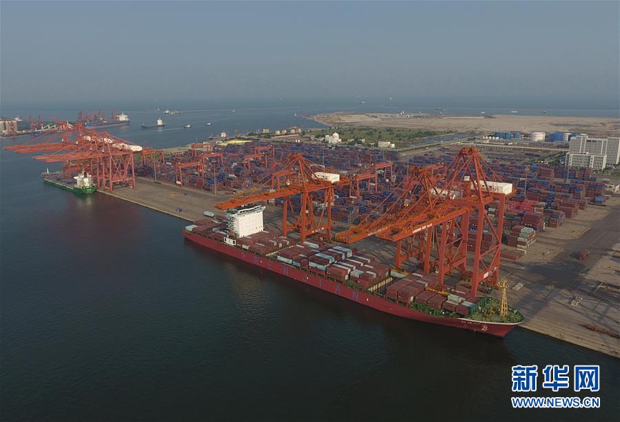 7月14日拍摄的河北唐山港京唐港区集装箱码头(无人机照片)。 当日,海关总署发布数据显示,今年6月份,我国货物贸易出口、进口首次迎来年内双双同比正增长,回升态势好于预期。 从月度看,自4月份起我国出口连续3个月实现正增长,6月份进出口同比增长5.1%。 新华社记者 杨世尧 摄