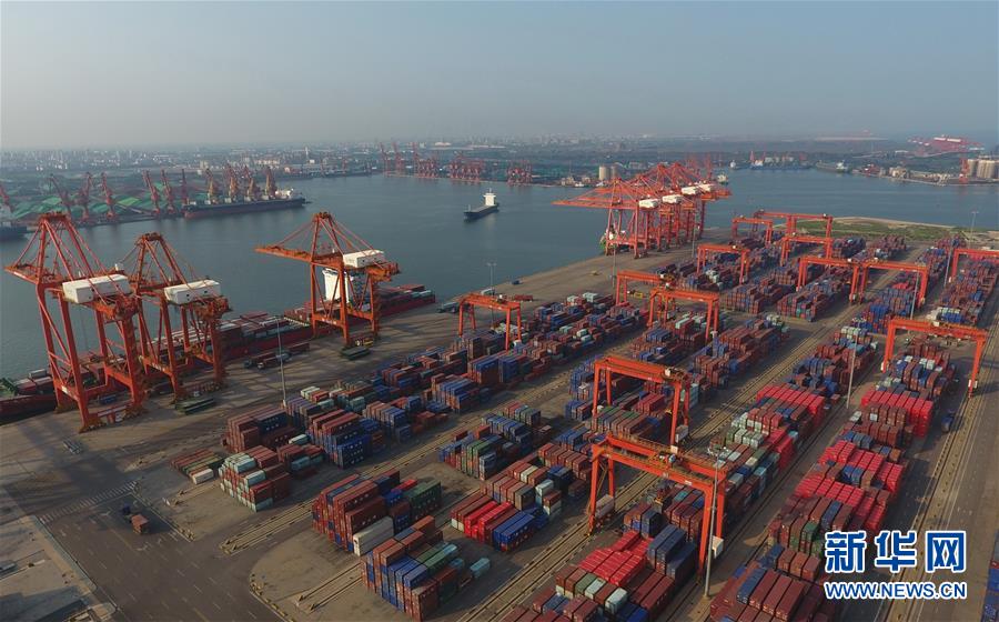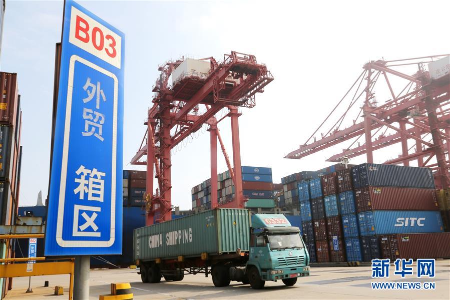7月14日,一批外贸集装箱在江苏连云港港集装箱码头装船。 当日,海关总署发布数据显示,今年6月份,我国货物贸易出口、进口首次迎来年内双双同比正增长,回升态势好于预期。 从月度看,自4月份起我国出口连续3个月实现正增长,6月份进出口同比增长5.1%。 新华社发(王春 摄)