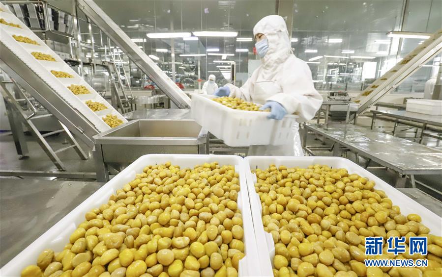 7月14日,工人在河北省遵化市一家外贸加工企业车间加工出口栗仁。 当日,海关总署发布数据显示,今年6月份,我国货物贸易出口、进口首次迎来年内双双同比正增长,回升态势好于预期。 从月度看,自4月份起我国出口连续3个月实现正增长,6月份进出口同比增长5.1%。 新华社发(刘满仓 摄)
