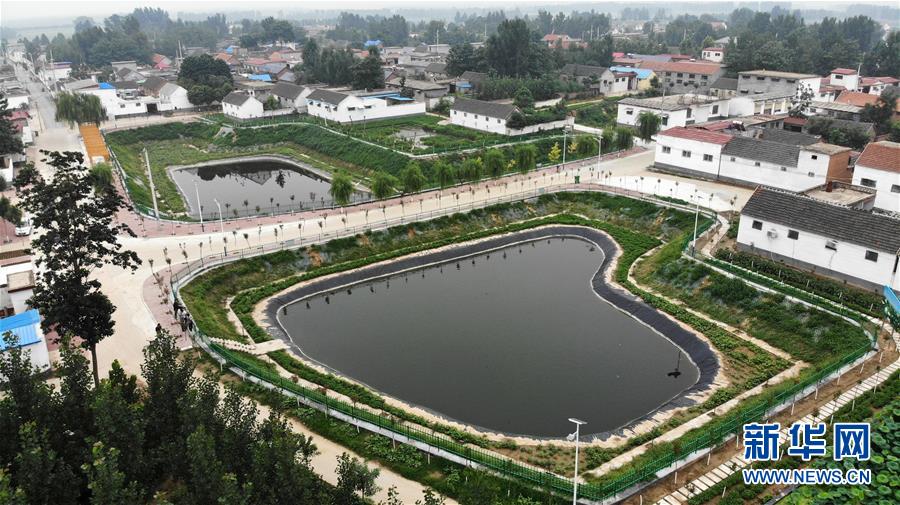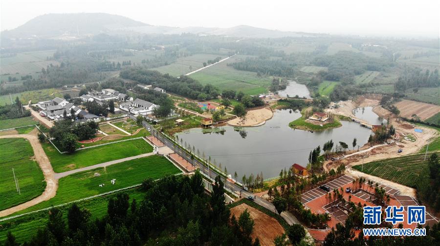 7月14日拍摄的汶上县白石镇北泉村民俗旅游区(无人机照片)。 近年来,山东省汶上县在乡村振兴过程中整治乡村环境、发展生态产业,建设美丽宜居的绿色乡村。 新华社记者 王凯 摄