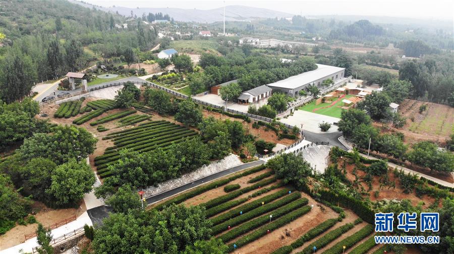 7月14日拍摄的汶上县白石镇夏村一处茶叶生产基地(无人机照片)。 近年来,山东省汶上县在乡村振兴过程中整治乡村环境、发展生态产业,建设美丽宜居的绿色乡村。 新华社记者 王凯 摄