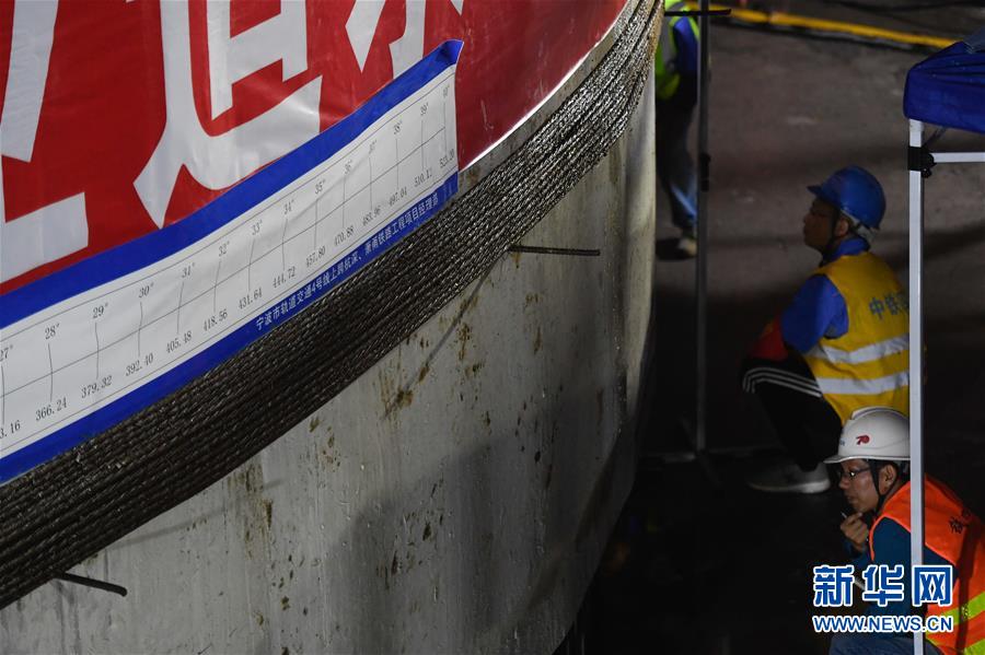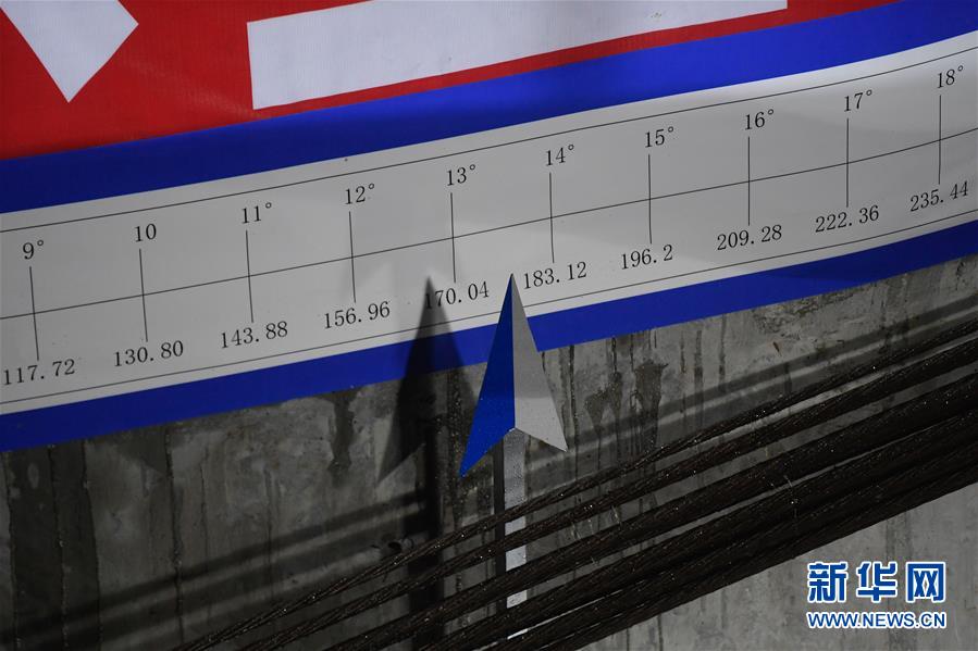 7月16日,宁波轨道交通4号线上跨杭深、萧甬铁路转体桥转动时在桥墩上显示的转盘刻度。 新华社记者 黄宗治 摄