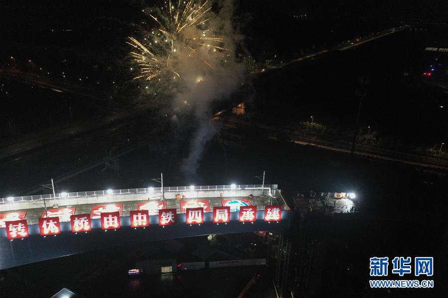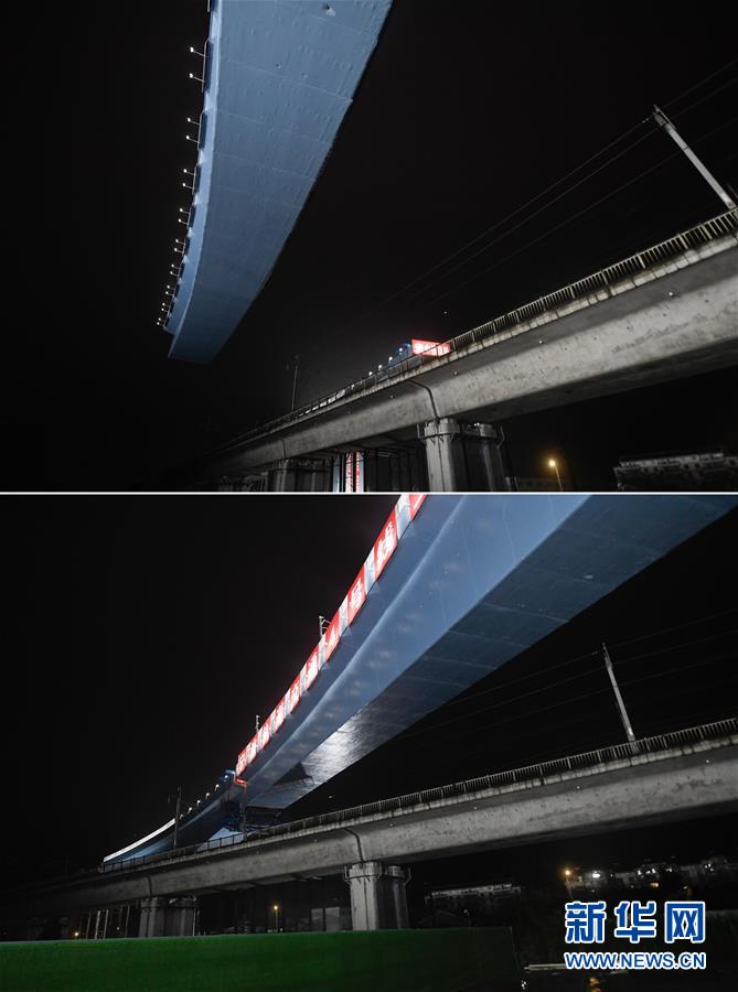 当日凌晨,经过1个多小时的“天窗点”作业,由中铁四局承建的宁波轨道交通4号线上跨杭深、萧甬铁路转体桥顺时针转动40度,实现精准对接。转体成功后,项目将进入轨道板、接触网等附属施工阶段。 据了解,该转体桥梁总长301米,宽11米,重约15000吨。