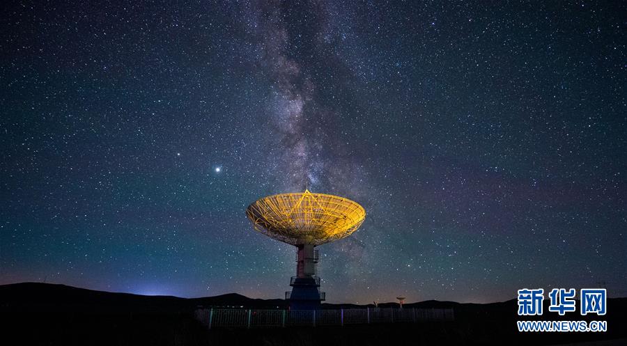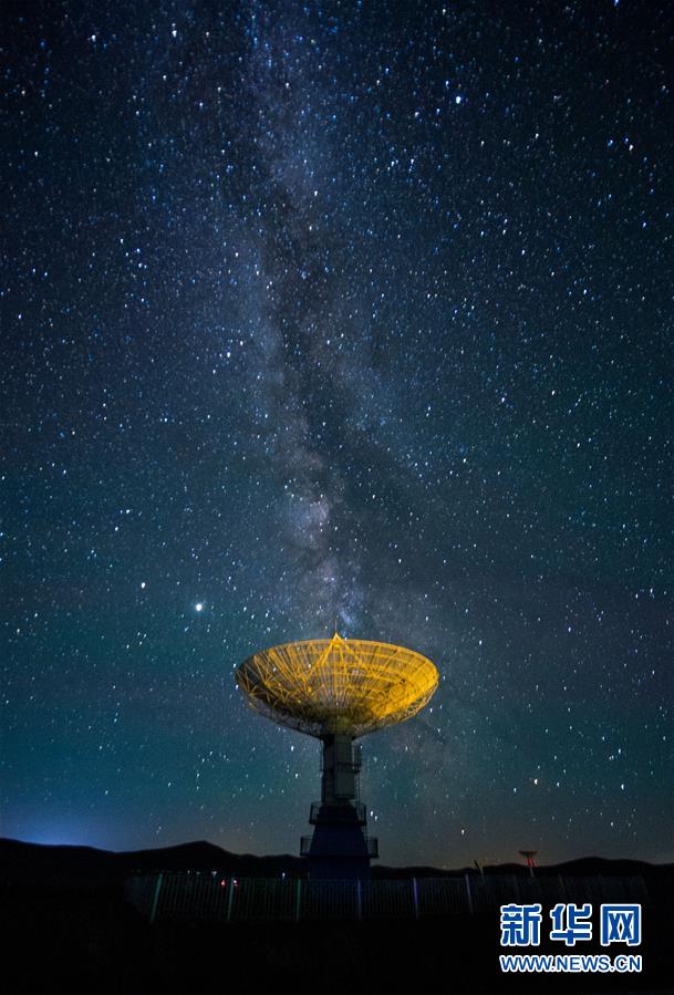 这是7月19日在明安图观测基地拍摄的星空。 7月18日晚至19日凌晨,在位于内蒙古锡林郭勒盟正镶白旗境内的国家天文台明安图观测基地,尼欧怀兹彗星划过天际。在明安图观测基地内,排列着100面白色的抛物面天线。这个庞大的天线阵列便是草原“天眼”——明安图射电频谱日像仪。草原“天眼”持续接收太阳射电辐射,然后由科研人员进行数据分析研究,对空间环境监测、太阳活动预报均有重要作用。 新华社记者 连振 摄