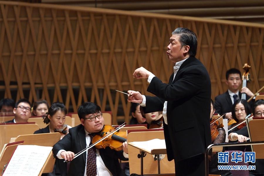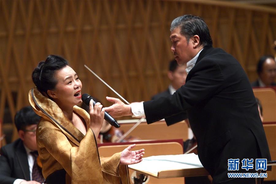 7月20日,上海交响乐团音乐总监余隆指挥演出。 当晚,为期10天的2020上海夏季音乐节开幕。开幕音乐会上,余隆执棒上海交响乐团演绎西贝柳斯的《图翁内拉的天鹅》《忧郁圆舞曲》和斯特拉文斯基《火鸟》组曲,并携手龚琳娜带来老锣的歌曲《静夜思》《山鬼》。 新华社记者 任珑 摄