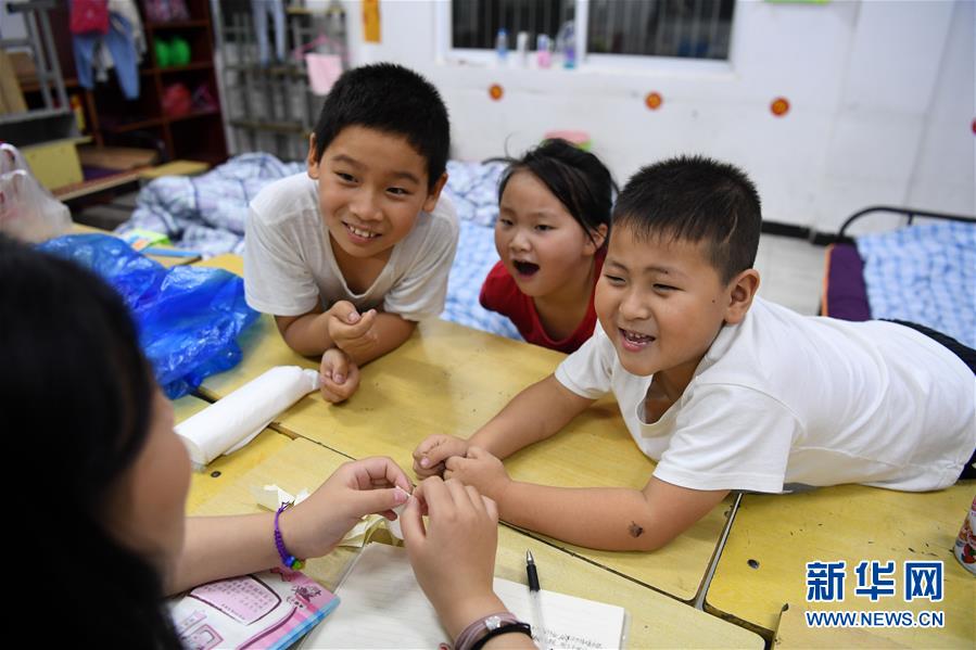 7月20日夜,在团结街小学临时安置点,小朋友在玩耍。新华社记者 刘军喜 摄