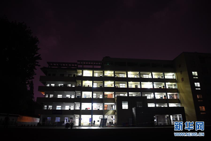 这是夜色中的团结街小学临时安置点(7月20日摄)。
