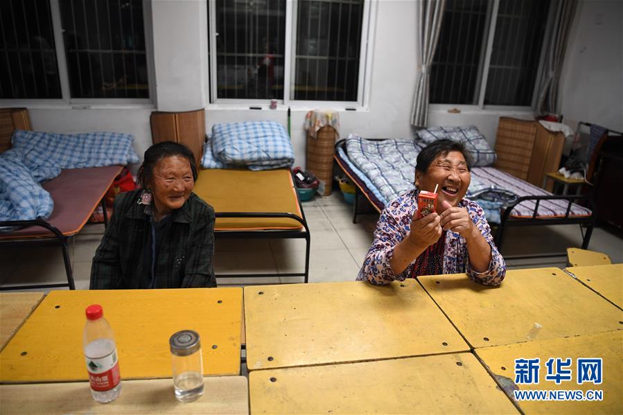 7月20日夜,在团结街小学临时安置点,老人在聊天。 新华社记者 刘军喜 摄