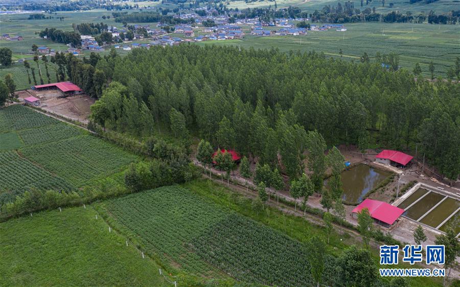 俯瞰布拖县比聪中药材种养殖农民专业合作社的养鸡场一角(7月20日摄,无人机照片)。新华社记者 江宏景摄