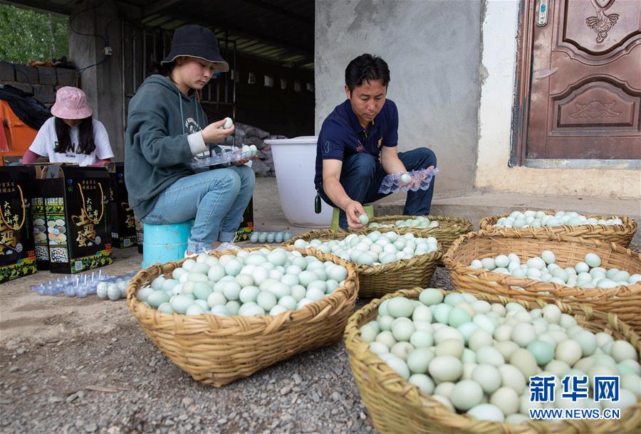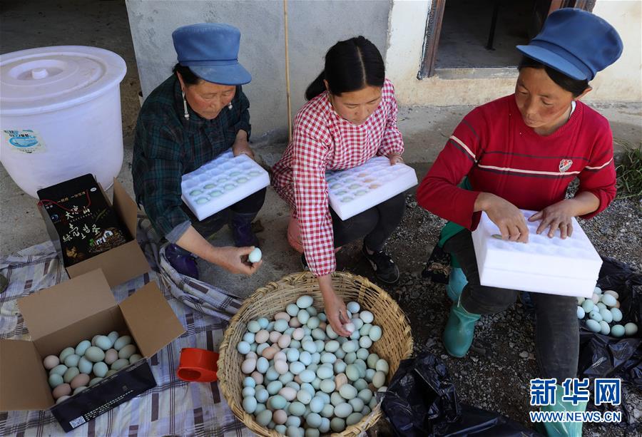 7月20日,在布拖县比聪中药材种养殖农民专业合作社的养鸡场,工人们在分拣绿壳蛋。新华社记者 江宏景摄