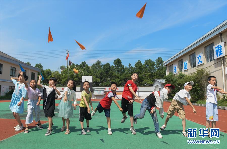 7月21日,在余姚市小曹娥镇的辛慧学校暑期乐园里,孩子们进行纸飞机放飞比赛。 正值暑假,浙江省余姚市外来务工人员的子女们纷纷从家乡来到余姚与父母们团聚。为了解除家长们的后顾之忧并让来自异地的“小候鸟”们能拥有充实快乐的暑假生活,余姚市大城小爱公益服务中心的青年志愿者组织开展多期以“多彩暑期 快乐成长”为主题的暑期乐园活动,内容包括安排文化课程、书画兴趣课、趣味手工课等,同时还给“小候鸟”们准备了暑期清凉大礼包,让他们在异乡度过一个快乐的暑期。 新华社记者 徐昱 摄