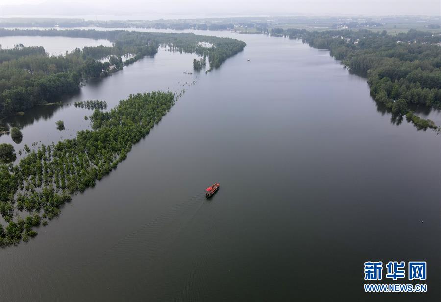 7月20日,在安庆市海口镇,王启干驾船行驶在西江上,运送参加抗洪抢险的解放军官兵(无人机照片)。 王启干,今年70岁,安徽省安庆市海口镇培文村人,从1979年开始,在当地的西江上摆渡,2017年因年纪大而“退休”。 今年受强降雨影响,西江水位暴涨,淹没了通往培文村的道路,转移村民、抢险救灾等都因无法通行而成了难题,村干部紧急联系王启干,王启干毫不犹豫地答应,重启摆渡船。 经过连夜的检查和调试,从7月11日开始,王启干驾着已停摆三年的船“重出江湖”,在儿子和儿媳共同帮助下,每天往返于西江两岸,帮忙转移群众、运送物资、接送参与抢险救灾的解放军官兵。 新华社记者 周牧 摄
