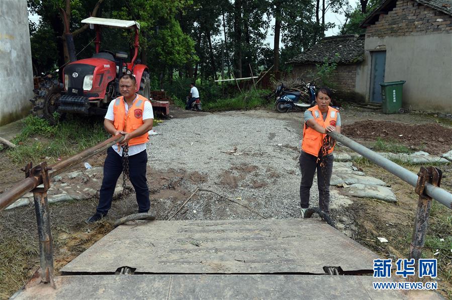 7月20日,在安庆市海口镇,王启干的儿子王为民(左)和儿媳王君彦(右)帮忙启动渡船。 王启干,今年70岁,安徽省安庆市海口镇培文村人,从1979年开始,在当地的西江上摆渡,2017年因年纪大而“退休”。 今年受强降雨影响,西江水位暴涨,淹没了通往培文村的道路,转移村民、抢险救灾等都因无法通行而成了难题,村干部紧急联系王启干,王启干毫不犹豫地答应,重启摆渡船。 经过连夜的检查和调试,从7月11日开始,王启干驾着已停摆三年的船“重出江湖”,在儿子和儿媳共同帮助下,每天往返于西江两岸,帮忙转移群众、运送物资、接送参与抢险救灾的解放军官兵。 新华社记者 周牧 摄