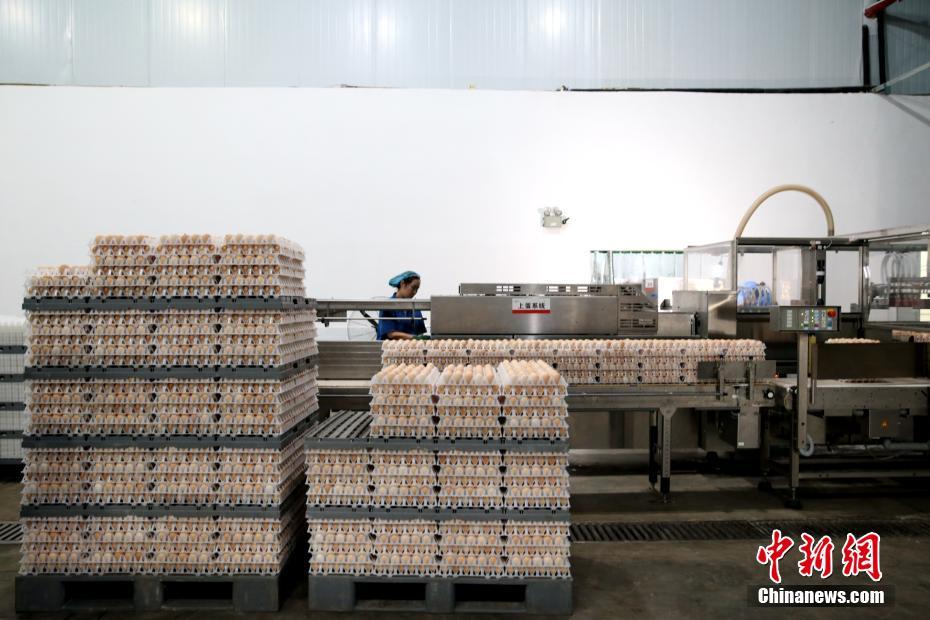 7月21日,社区居民在鸡蛋加工车间工作。陕西省商洛市山阳县富桥社区共安置易地扶贫搬迁对象3000余人。该社区依托己建成的金鸡扶贫产业园、和丰阳光食用菌产业园、电子设备和肠衣护套加工厂就近安置就业580人,其中贫困劳动力320人,帮助了不少出不了远门又需要照顾老人孩子的妇女就业。中新社记者 张远 摄
