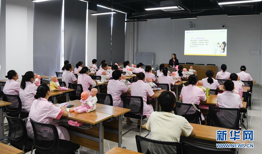 7月21日,在海南省儋州市的海南西部家庭服务中心,学员在课上学习月嫂相关知识。新华社记者 杨冠宇 摄