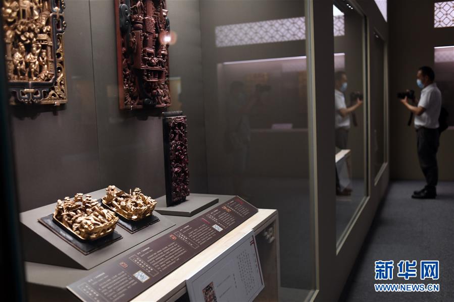 7月23日,参观者在北京中国国家博物馆观看潮州木雕展。 新华社记者 金良快 摄