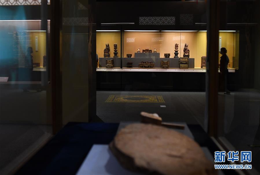 这是7月23日在北京中国国家博物馆拍摄的金漆木雕。