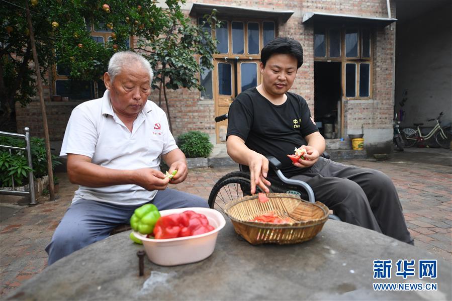 7月22日,王红彬(右)和父亲在自家院里择菜。新华社记者 朱旭东 摄