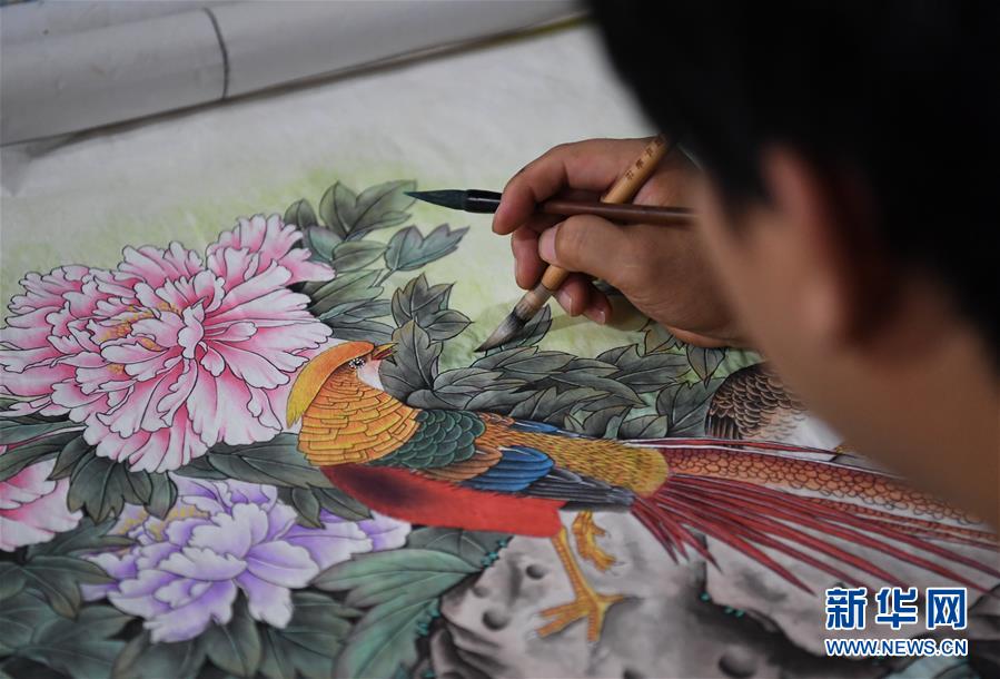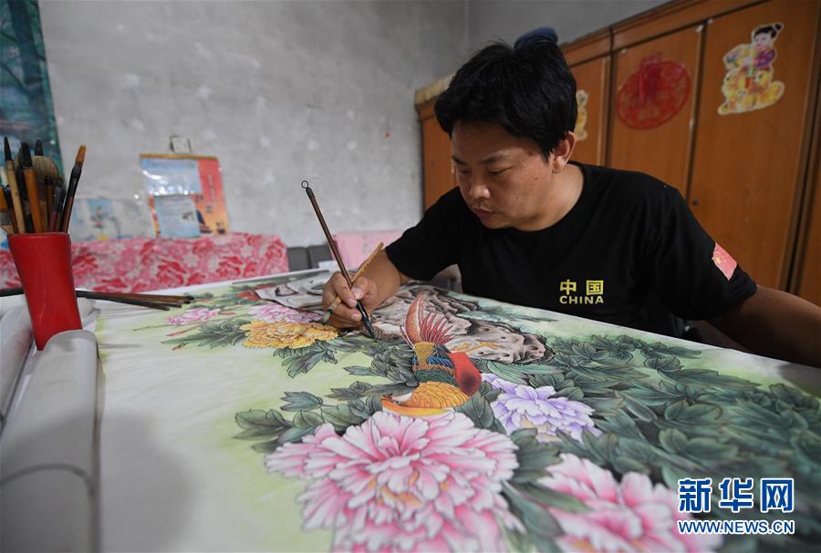 7月22日,王红彬在家中创作工笔画。新华社记者 朱旭东 摄