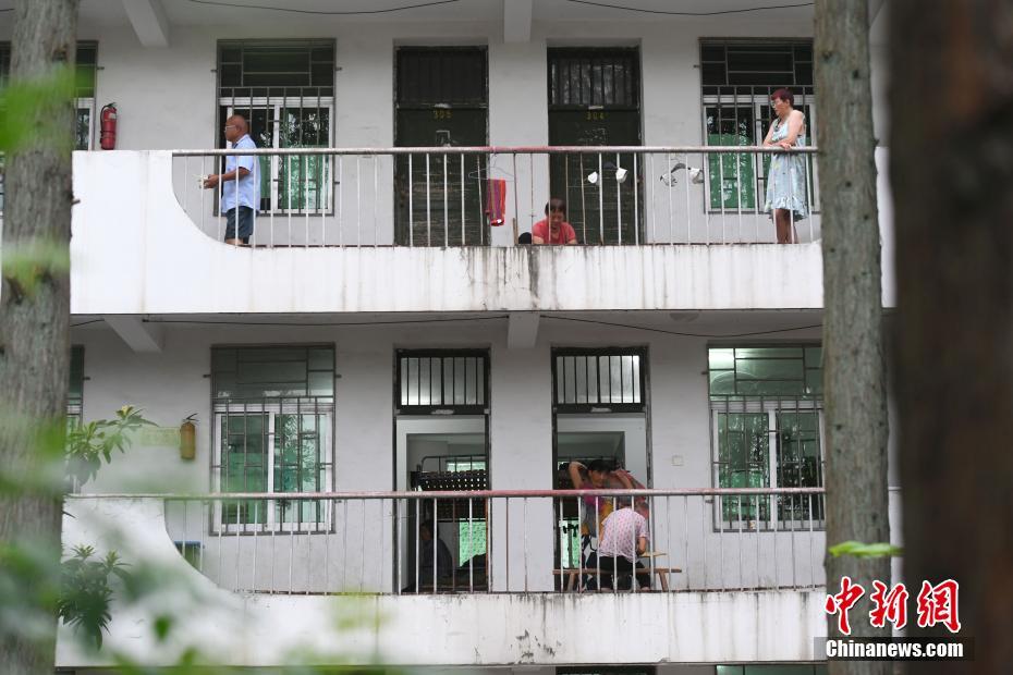 7月23日,村民在安徽巢湖柘皋中学安置点内聊天。受连日强降雨影响,巢湖水位、柘皋河水位上涨,造成部分村镇被洪水围困。柘皋镇在抗洪抢险的同时,及时转移当地民众。目前该安置点已安置村民300余人,安置点为村民提供住宿、饮食及医疗等服务。中新社记者 韩苏原 摄