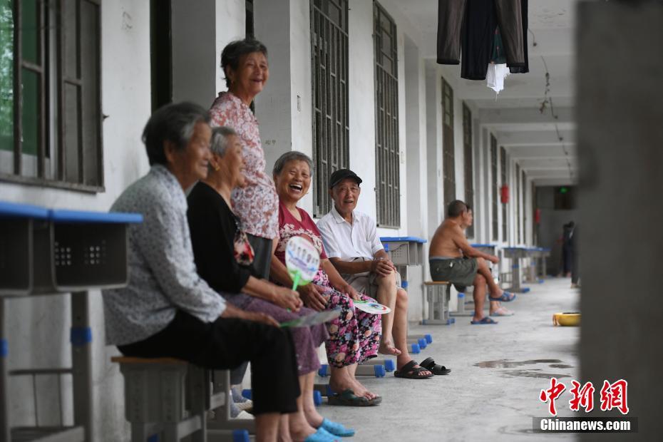 7月23日,村民在安徽巢湖柘皋中学安置点聊天休息。受连日强降雨影响,巢湖水位、柘皋河水位上涨,造成部分村镇被洪水围困。柘皋镇在抗洪抢险的同时,及时转移当地民众。目前该安置点已安置村民300余人,安置点为村民提供住宿、饮食及医疗等服务。中新社记者 韩苏原 摄