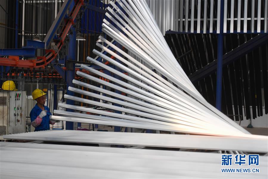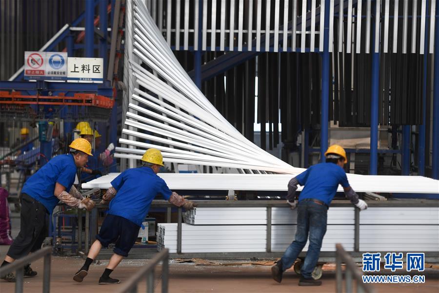 7月29日,工人在位于浙江省湖州市吴兴高新区的浙江鸿昌铝业有限公司生产车间内作业。该企业生产节能环保型铝合金建筑型材和高端工业型材。新华社记者 黄宗治 摄