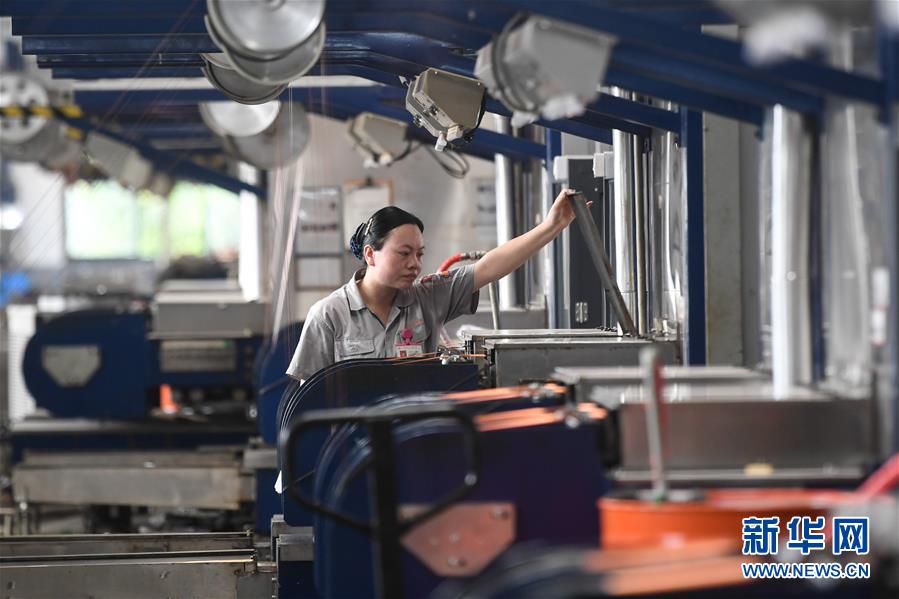 7月29日,工人在位于浙江省湖州市吴兴高新区的先登高科电气有限公司的电磁线生产车间作业。新华社记者 黄宗治 摄