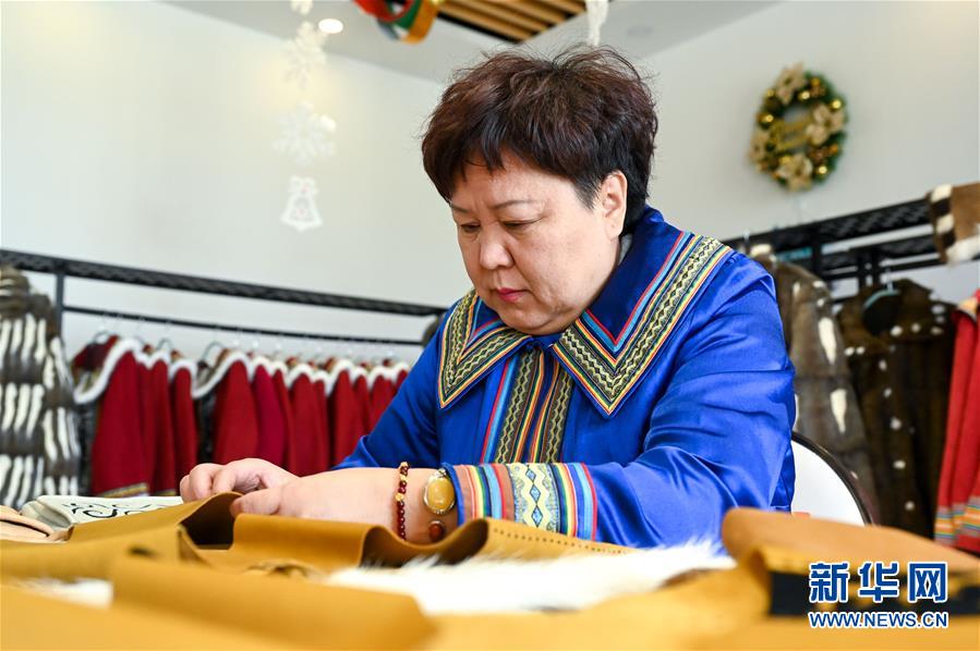 这是2019年12月16日拍摄的位于内蒙古自治区呼伦贝尔市鄂温克族自治旗民族文化产业创业园的太阳姑娘工作室。 新华社记者 贝赫 摄