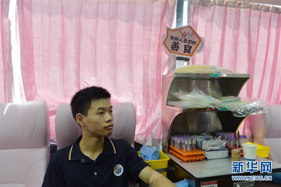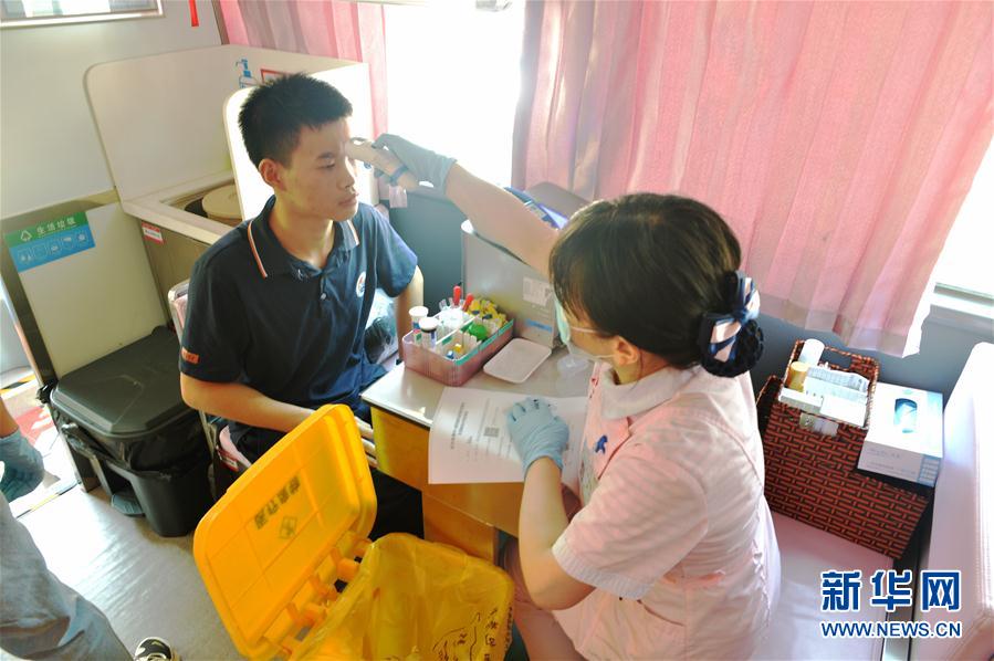 8月4日,长沙市长郡梅溪湖中学高三毕业生参加献血活动。 当日,湖南省长沙市长郡梅溪湖中学高三毕业生参加无偿献血活动,给自己送上一份别样的“成人礼”。 新华社记者 戚晓毅 摄