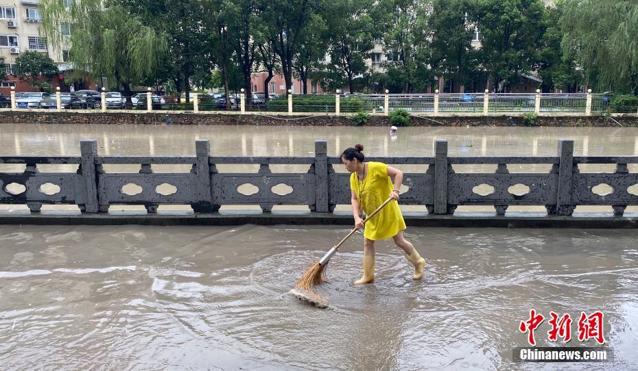 8月4日,市民清理积水。4日3时30分前后,乐清16年后再次迎来台风登陆,登陆时中心附近最大风力13级(38米/秒)。中新社记者 王刚 摄