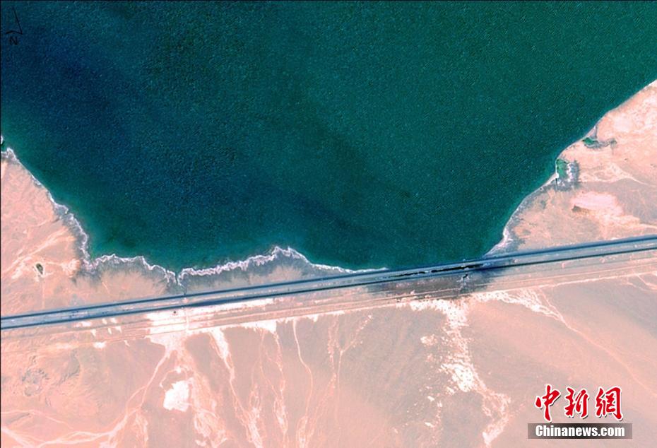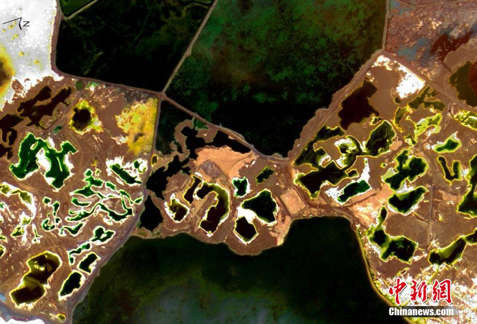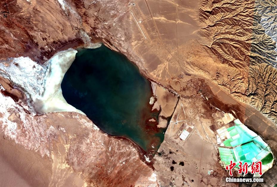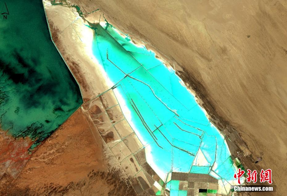 青海省地质调查院工作人员近两年利用卫星系统,扫描茶卡盐湖、察尔汗盐湖、东台吉乃尔湖、可可西里盐湖等青海多个盐湖。以空中视角看,夏日盐湖犹如碧玉横卧高原,冬季则千里冰封。图为位于青海省海西蒙古族藏族自治州的察尔汗盐湖。青海省地质调查院 供图