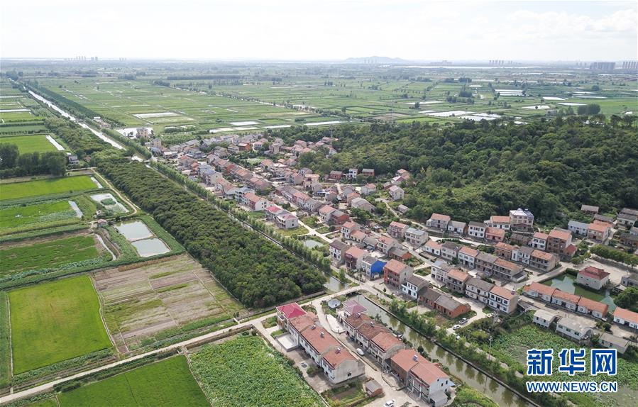 鸟瞰鄂州市长港镇峒山村(8月6日摄,无人机照片)。 近年来,湖北省鄂州市长港镇峒山村着力提升村居环境,积极实施厕所改造、污水处理、道路硬化、植树绿化等措施,改善乡村面貌,提升村民幸福感。 新华社记者 程敏 摄