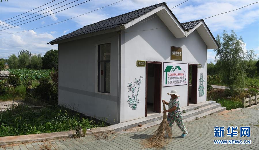 鄂州市长港镇峒山村村民在打扫卫生(8月6日摄)。 近年来,湖北省鄂州市长港镇峒山村着力提升村居环境,积极实施厕所改造、污水处理、道路硬化、植树绿化等措施,改善乡村面貌,提升村民幸福感。 新华社记者 程敏 摄