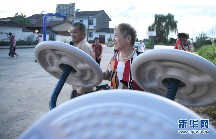 鄂州市长港镇峒山村村民在锻炼身体(8月6日摄)。 近年来,湖北省鄂州市长港镇峒山村着力提升村居环境,积极实施厕所改造、污水处理、道路硬化、植树绿化等措施,改善乡村面貌,提升村民幸福感。 新华社记者 程敏 摄