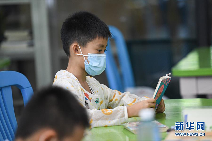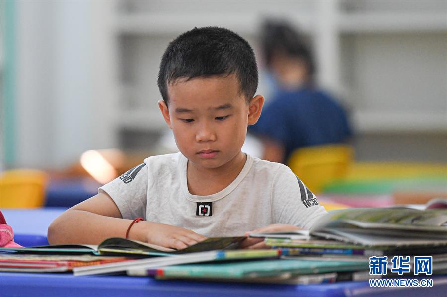 8月8日,小朋友在位于海口的海南省图书馆阅读书籍。 暑假期间,许多小朋友来到海南省图书馆阅读书籍,在书香中度过快乐暑假。 新华社记者 蒲晓旭 摄