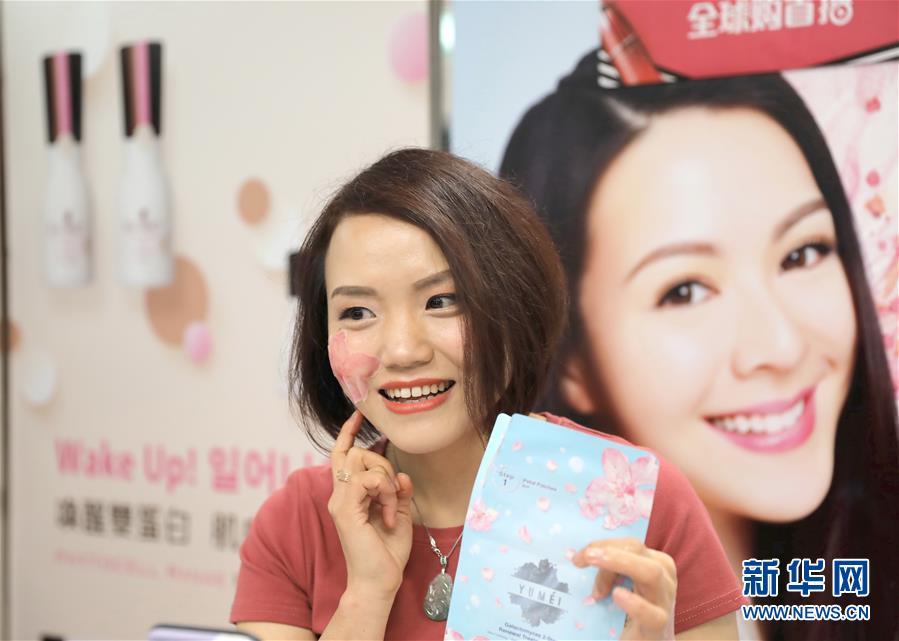香港一家零售店的员工在直播带货(6月5日摄)。 新华社记者 吴晓初 摄