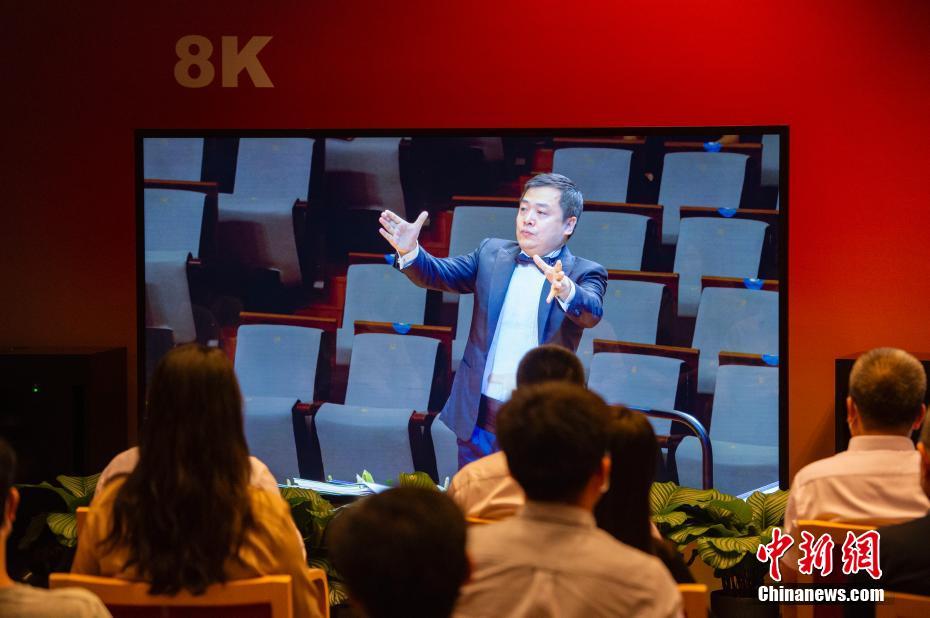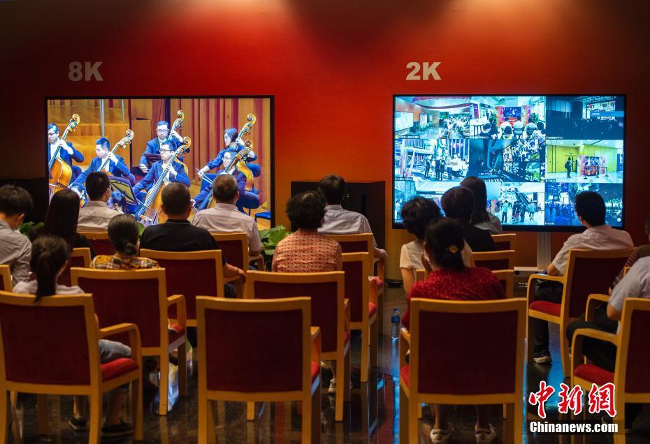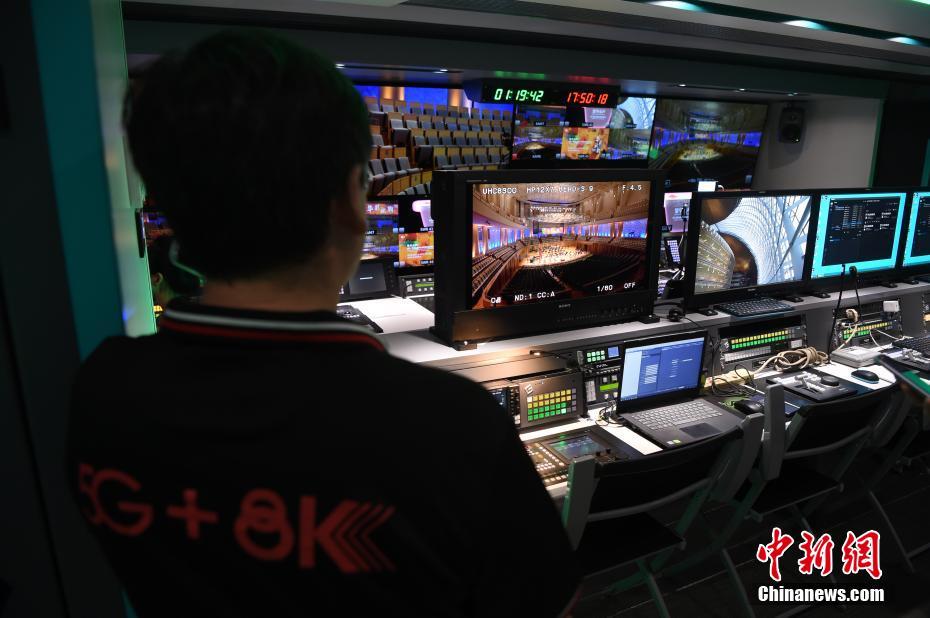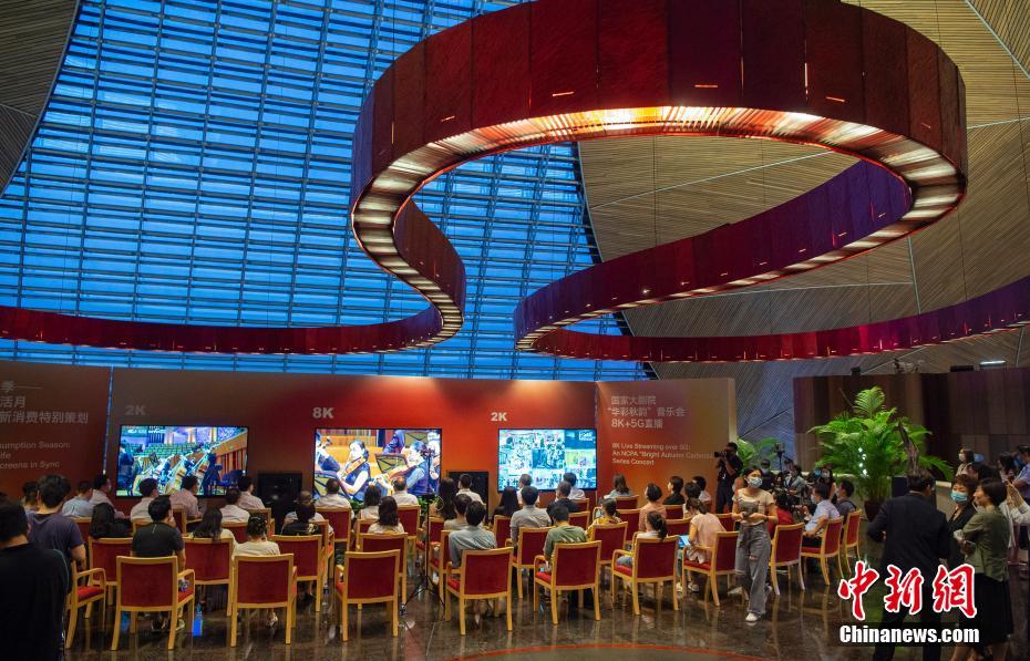 8月8日,“华彩秋韵”系列音乐会的首场演出在北京国家大剧院举行,并进行全球首次舞台艺术“5G+8K”直播。此次演出是北京消费季“炫·彩生活月”的重要活动之一,在国家大剧院花瓣厅、王府井、三里屯、华熙LIVE、中关村步行街、金融街购物中心等八个区域布设8K电视、5G手机等显示终端,民众可观看本场音乐会“5G+8K”的超高清演出实况,感受科技与艺术相结合的视听盛宴。中新社记者 侯宇 摄