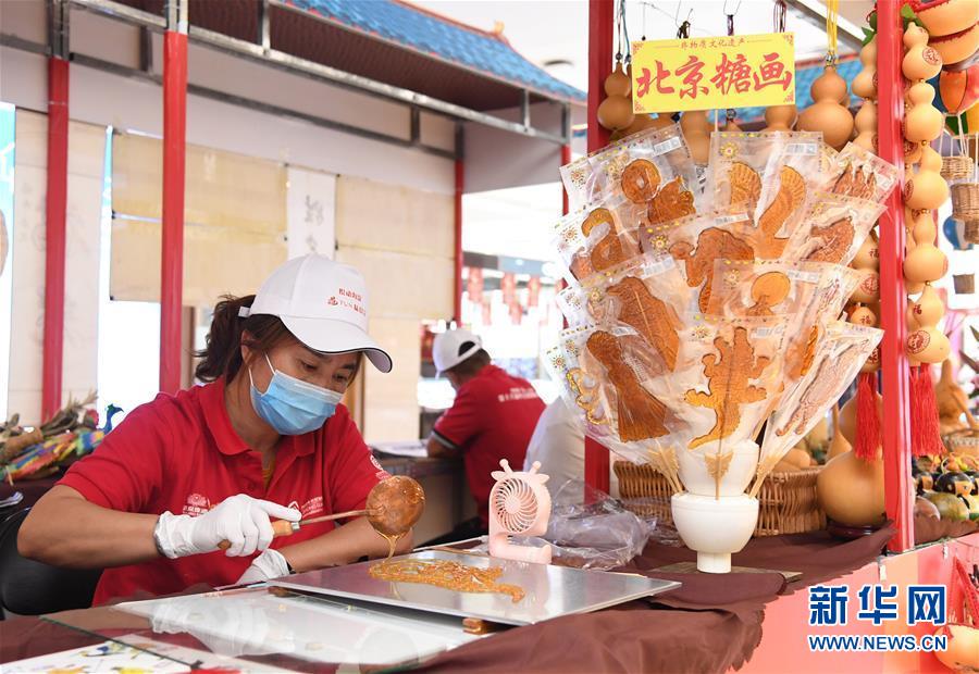 8月8日,在第十八届中关村国际美食节美食美酒嘉年华文创非遗展示区,工作人员制作糖画。 新华社记者 任超 摄