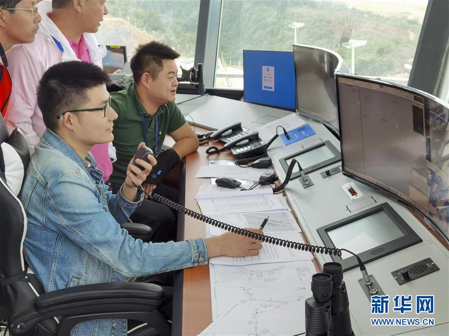 8月13日,参加校飞的地面工作人员在仙女山机场的塔台工作区内工作。 当日,位于重庆武隆区的仙女山机场飞行校验工作正式开始。据介绍,重庆仙女山机场校飞时间大约需3至5天。 重庆仙女山机场于2018年4月全面开工,机场跑道长2800米、宽45米,航站楼总面积6000平方米,投用后可满足每年60万人次的旅客吞吐量。 新华社记者 刘潺 摄