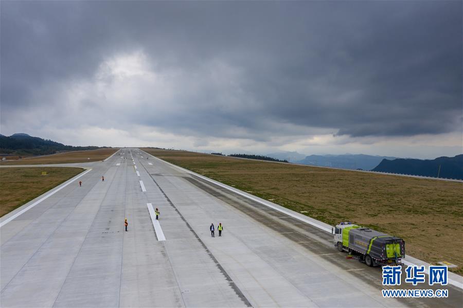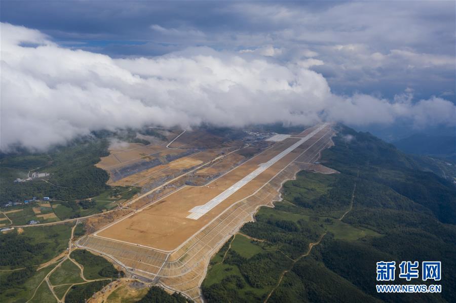 8月12日拍摄的重庆仙女山机场(无人机照片)。 8月13日,位于重庆武隆区的仙女山机场飞行校验工作正式开始。据介绍,重庆仙女山机场校飞时间大约需3至5天。 重庆仙女山机场于2018年4月全面开工,机场跑道长2800米、宽45米,航站楼总面积6000平方米,投用后可满足每年60万人次的旅客吞吐量。 新华社记者 刘潺 摄