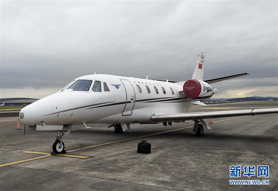 8月13日在重庆江北国际机场拍摄的仙女山机场校飞飞机(手机拍摄)。 当日,位于重庆武隆区的仙女山机场飞行校验工作正式开始。据介绍,重庆仙女山机场校飞时间大约需3至5天。 重庆仙女山机场于2018年4月全面开工,机场跑道长2800米、宽45米,航站楼总面积6000平方米,投用后可满足每年60万人次的旅客吞吐量。 新华社发(重庆机场集团供图)