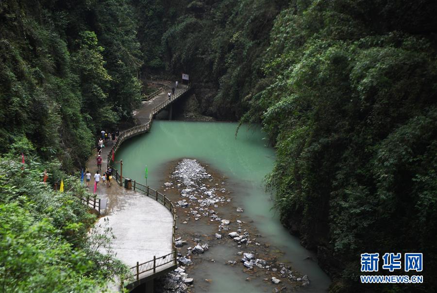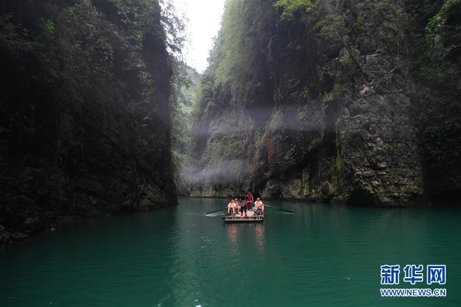 游客在阿依河景区游览(8月13日摄)。 阿依河景区地处重庆市彭水苗族土家族自治县,融山、水、林、泉、峡于一体,集雄、奇、险、秀、幽于一身。近年来,阿依河景区利用良好的自然条件和丰富的民俗文化,不断丰富旅游项目、改善旅游体验、拓展旅游业态,发展“美丽经济”。 新华社记者 王全超 摄