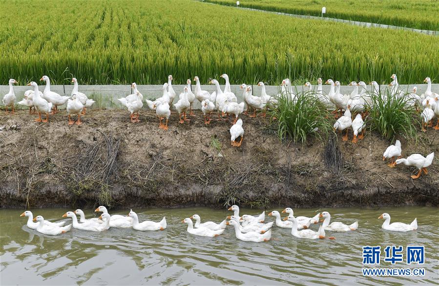这是8月13日在吉林市孤店子镇春新农场拍摄的鸭稻共生绿色有机水稻田。 新华社记者 许畅 摄