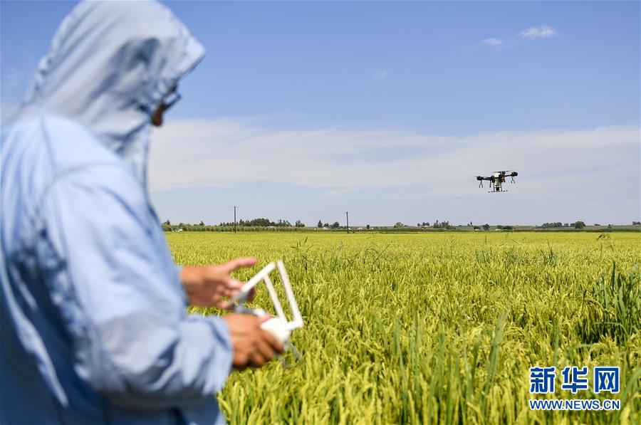 在吉林市永吉县一拉溪镇九月丰家庭农场,工作人员利用无人机进行稻田植保作业(8月12日摄)。 近年来,吉林省吉林市大力发展“智慧农业”,以新技术、新模式、新业态为抓手,在希望的田野上播撒“科技种子”,让农民从“会”种地到“慧”种地,保障粮食安全,助力乡村振兴。 新华社记者 许畅 摄