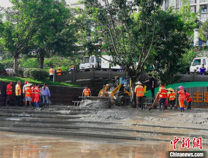 14日,受涪江连续两轮洪峰过境影响,重庆市潼南城区临江公共设施聚集大量淤泥。洪水退去后,当地相关部门开始组织人员开展清淤工作,帮助群众尽快恢复正常生活秩序。当天凌晨两点,当地环卫部门调集53台铲车、洒水车、清运车和380多名工人,全力对潼南区湿地公园、蔬菜公园、双江古镇等地的淤泥进行清扫、冲刷。据悉,潼南城区的清淤、消毒等工作力争在10日内完成,居民的生产生活正陆续恢复。